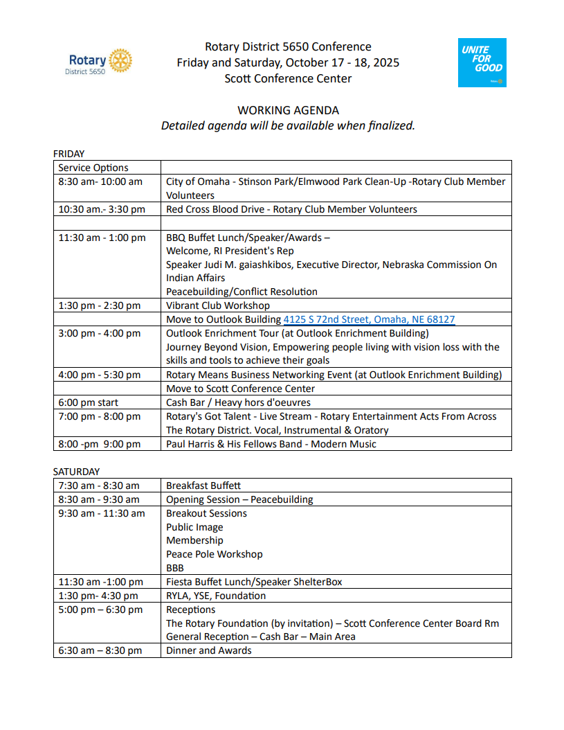The 2025-2026 Rotary District 5650 Fall Conference is happening THIS FRIDAY AND SATURDAY!